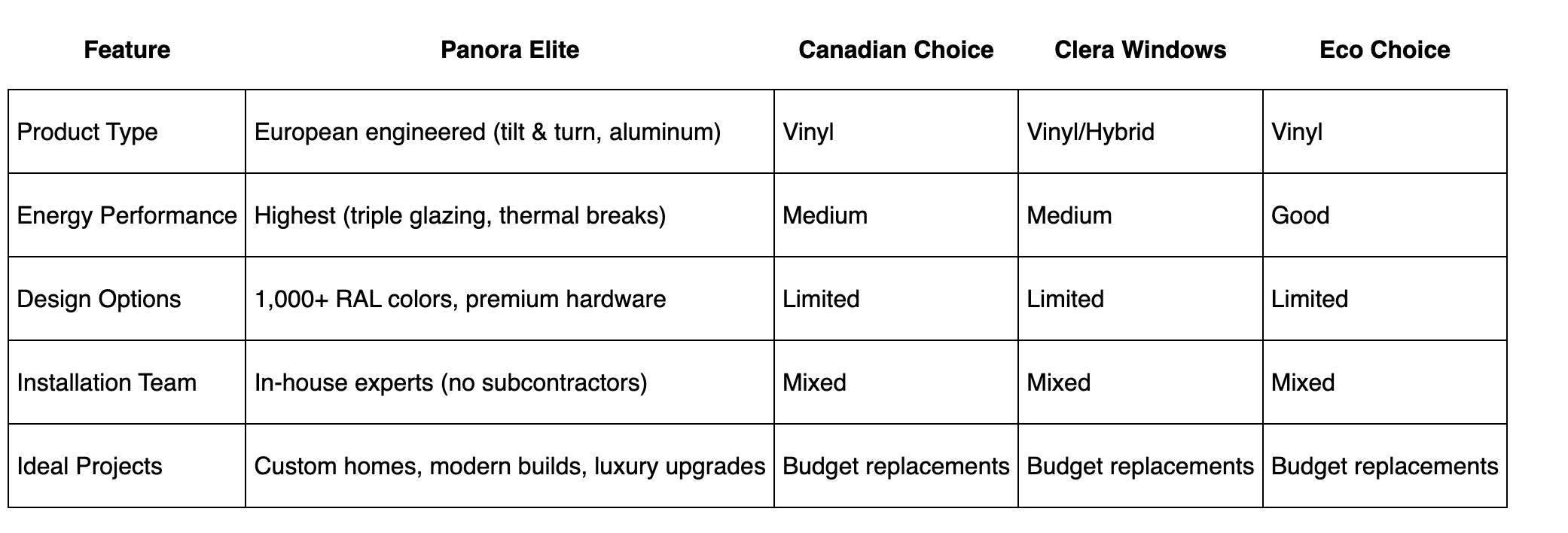 Here is a simple breakdown of how Panora Elite compares to other well-known Toronto window companies.